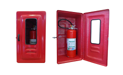 Os abrigos em fibra de vidro, para extintor e mangueira de incêndio, são próprios para ambientes corrosivos ou sob ação das intempéries. Fabricados com dobradiças e fechaduras em aço inox 304, fixados com rebites em alumínio, puxador em Poliamida + PRFV e visor de poliestireno cristal 1,5mm com perfil de borracha “S” para acabamento e vedação.