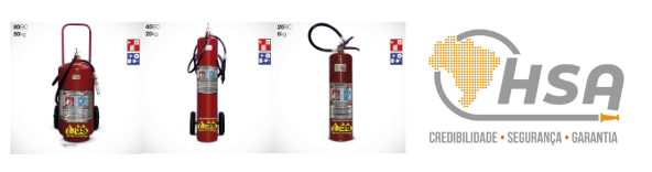 - Extintor de CO₂: 2 kg, 4 kg, 6 kg e 10 kg.