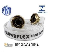 A Mangueira Tipo 3 Superflex Capa Dupla é projetada para suportar ambientes de alto risco, como indústrias, fábricas e grandes centros comerciais, com uma capacidade superior de resistir a pressões elevadas e condições extremas. -