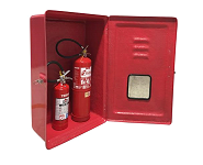 Os abrigos em fibra de vidro, para extintor e mangueira de incêndio, são próprios para ambientes corrosivos ou sob ação das intempéries. Fabricados com dobradiças e fechaduras em aço inox 304, fixados com rebites em alumínio, puxador em Poliamida + PRFV e visor de poliestireno cristal 1,5mm com perfil de borracha “S” para acabamento e vedação.