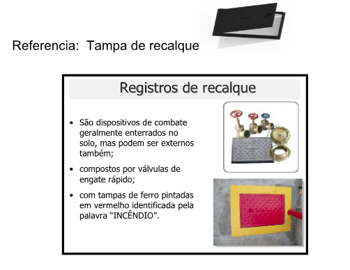 O registro, por sua vez, é utilizado para abastecer a coluna de hidrantes presentes nas edificações e sua presença é obrigatória, uma vez que durante incêndios de grande porte o fornecimento público de água pode não ser suficiente para contenção das chamas.